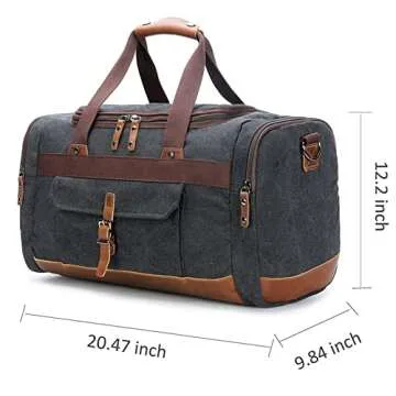 BLUBOON Overnight Bag Canvas Genuine Leather 20.5"/10"/12.2" Vintage Travel Duffel Bags (Big Size Dark Grey)