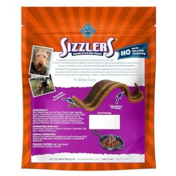 Show more Indulge your beloved furry companion with Blue Buffalo Sizzlers Natural Soft Dog Treats, the ultimate snack that combines taste and health! Crafted with real USA pork, these irresistible bacon-style treats are not only mouth-watering but also deliver a flavor punch that will have your dog begging for more. As soon as you open the 6-oz bag, your pet will come bounding over, eager for this delicious reward.
