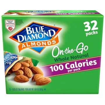 Blue Diamond Almonds Whole Natural Raw Snack Nuts, 100 Calorie Travel Bags, 32 count