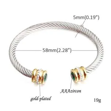 Show moreIntroducing the BLUE ELF Cable Wire Cuff Bracelet – a stunning piece that perfectly combines elegance and a personal touch. Crafted from premium stainless steel, this two birthstone bangle bracelet features a beautifully twisted wire design that adds a touch of sophistication to any ensemble. Designed for women who love to express their individuality, this cuff bracelet not only showcases your style but also lets you carry a piece of your loved ones with you, thanks to its unique birthstone feature. Whether you're dressing up for a special occasion or looking to enhance your everyday style, this bracelet is a must-have accessory.