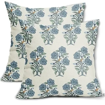 Show moreWelcome to a world where elegance meets comfort with our Blue Floral Block Print Pillow Covers. Crafted meticulously from high-quality cotton linen, these exquisite covers measure 18 x 18 inches (45 x 45 cm) and bring an enchanting touch to your living space. The captivating Chinoiserie decoration features vibrant light blue flowers and delicate green leaves, effortlessly complemented by charming birds, all designed to infuse both beauty and tranquility into your décor. With a soft, breathable texture and exceptional durability, they are the perfect addition for enhancing your sofa, bed, or any cozy corner in your home.