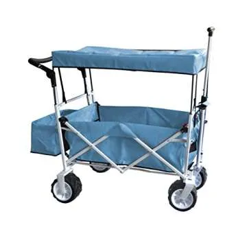 BLUE FREE ICE COOLER PUSH AND PULL HANDLE FOLDING BABY STROLLER WAGON OUTDOOR SPORT COLLAPSIBLE KIDS TROLLEY W/ CANOPY GARDEN UTILITY SHOPPING TRAVEL BEACH CART - EASY SETUP NO TOOL NECESSARY