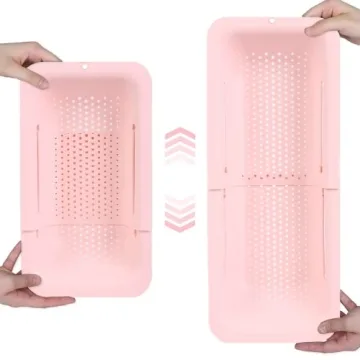 Show more Introducing the BLUE GINKGO Over the Sink Colander Strainer Basket - an essential kitchen companion designed for the modern home chef! This versatile colander offers a practical solution to a range of kitchen tasks, from washing fresh vegetables and fruits to draining cooked pasta, thawing frozen foods, and even air-drying dishes. Designed with functionality in mind, its adjustable frame expands from 14 to 19 inches, allowing it to fit comfortably over most sinks while maximizing your workspace.