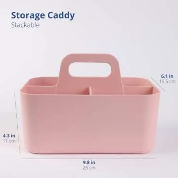 BLUE GINKGO Stackable Organizer Caddy – Korean-Made Portable Tote for Bathroom, Office, Crafts, or School Supplies (Rectangle, Pink)