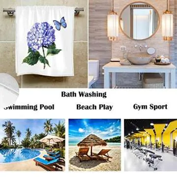 Blue Hydrangea Butterfly Hand Towels 16x30 in Spring Summer Watercolor Floral Purple Flower Bathroom Towel Small Bath Towel Kitchen Dish Guest Towel Decorations for Hand Face Gym Spa Bathroom