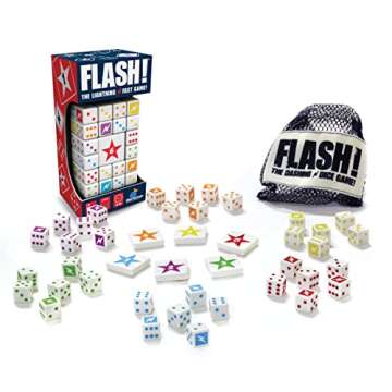 Introducing the exhilarating dice game, Flash, where speed meets strategic thinking! This electrifying game is designed for 2 to 6 players, making it perfect for family gatherings or fun with friends. As players scoot their dice across the table, they engage in a thrilling battle of sight, sound, and skill! Flash gets your adrenaline pumping as you count dots, match numbers, and swiftly shake your way to victory.