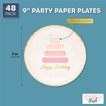 BLUE PANDA 48-Pack Pink Happy Birthday Paper Plates - Elegant & Durable