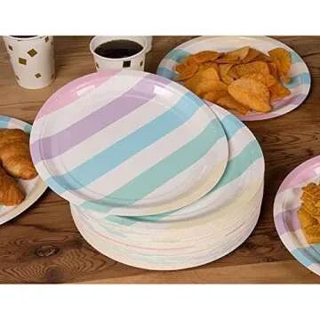 BLUE PANDA 80-Count Disposable Paper Plates, Multi-Colored Pastel Stripes Design, 9 Inches