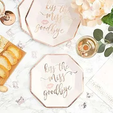 BLUE PANDA Bachelorette Party Plates - Kiss the Miss Goodbye, Rose Gold, 48 Count
