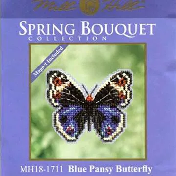 Unleash your creativity with the Blue Pansy Butterfly Beaded Counted Cross Stitch Ornament Kit from Mill Hill's 2017 Spring Bouquet collection. This delightful kit includes everything you need to create a stunning 2.5 x 3 inch decorative piece, featuring enchanting designs like the Blue Pansy Butterfly, Lotus Egg, Lizard, Snail, Trellis Egg, and Seagull. Crafted for both beginners and experienced...