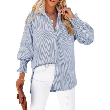 When compared to other button-down shirts on the market, the Stylish Blue Striped Button Down Shirt for Women stands out due to its remarkable blend of comfort, style, and quality. Many shirts tend to sacrifice either comfort or aesthetics, but this shirt manages to combine both effortlessly, featuring breathable fabric that does not compromise on the trendy oversized fit. Unlike competitors, which may offer sheer or ill-fitting options, our shirt guarantees a flattering silhouette for various body types while remaining opaque and undeniably stylish. Plus, its unique smocking detail offers a refreshing twist that is rarely found in standard button-ups.