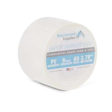 Show moreIntroducing the ultimate solution for moisture control and sealing needs: the Blue Summit Supplies Vapor Barrier Tape. This premium 9 mil tape, measuring 3.78 inches in width, is engineered for high performance and durability, making it a must-have for any DIY enthusiast or professional contractor. Crafted to bind seams of polyethylene films and seal moisture barriers, this tape is perfect for encapsulating crawl spaces with unparalleled efficacy. Its synthetic rubber-based pressure-sensitive adhesive provides a strong bond that conforms perfectly without excessive stretching, ensuring a reliable seal every time.