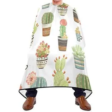 Blueangle Fresh Succulent Cactus Salon Barber Cape for Men and Women Hairdressing, Waterproof Adjustable Snap Closure Apron Hair Cutting Capes for Home Use, 55x65 Inch