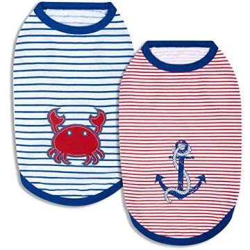Blueberry Pet Soft & Comfy Summer Vacation Beach Cotton Dog T-Shirts, 2 Pack, Sunshine Sea Lover Striped Shirts Tank Top Clothes, Back Length 14", for Small Medium Dogs