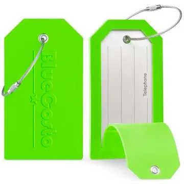 Show moreIntroduce a touch of vibrancy and efficiency to your travel gear with the BlueCosto Luggage Tags. These bright green luggage identifiers are meticulously designed to make your bags easily recognizable at first glance, ensuring that you can spot your suitcase quickly in crowded terminals or baggage claims. Each tag measures 4.5" x 2.5" (11cm x 6cm) and a sturdy thickness of 0.22" (0.5cm), providing ample space for your name and other essential details. Crafted from high-quality PVC rubber, they are not only stylish but built to endure the demands of frequent travel, including rough handling and extreme weather conditions. With the stainless steel wire loops included, attaching your tags is a breeze. You can secure them easily and confidently, knowing they won't come loose during your journeys.