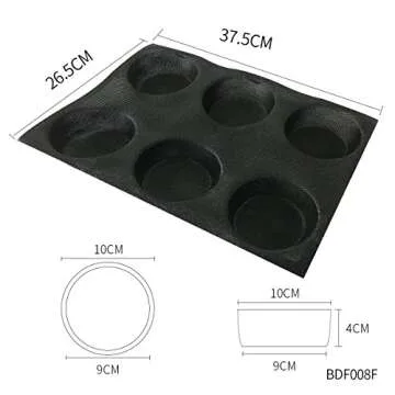 Show moreIntroducing the **Bluedrop Silicone Bun Bread Form**, an essential addition to any baking enthusiast’s toolkit. This innovative round shape bread tray is designed with precision to ensure your baked goods turn out perfectly every time. Each pack contains 1 durable silicone mold, measuring 14.7" x 37.5 cm, with six individual caverns, that are each 4 inches in diameter and 1.57 inches deep. Made from **food-grade silicone-coated fiberglass mesh**, it can withstand temperatures ranging from -40 to 250 °C, making it ideal for various baking needs. No more worrying about your buns sticking or falling apart; this non-stick performance ensures a flawless release, offering an enjoyable baking experience.