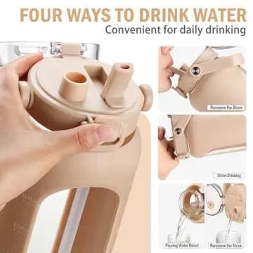 BLUEGO 64oz Glass Water Bottles with Straw Time Marker Half Gallon Large Motivational Water Bottle with Silicone Sleeve 2 Liter Large Glass Water Jug for Gym, Sports& Workout, Daily, Amber