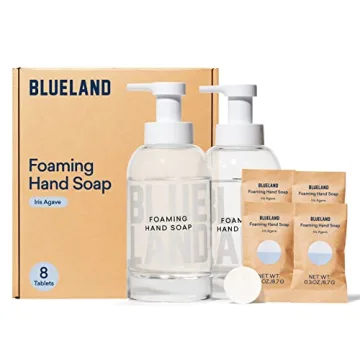 Show moreIntroducing the BLUELAND Hand Soap Duo, an eco-friendly solution marrying functionality with sustainability! This product redefines handwashing with its innovative foaming hand soap system housed in two elegant refillable glass dispensers. Each dispenser is paired with 8 compostable refill tablets, allowing you to create clean, foamy soap right at home. The delightful Iris Agave scent offers a refreshing fragrance that elevates your daily routine while being gentle on your skin and the environment. Experience cleanliness reimagined—and say goodbye to single-use plastics forever!