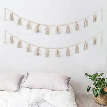 BlueMake 2 Pack Macrame Woven Tassel Garland Belly Basket Decorative Wall Hangings for Boho Home Decor,Nursey Room (Ivory B)