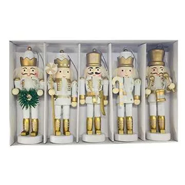 BlueSpace Christmas Nutcracker Ornaments Set Wooden Nutcrackers Hanging Decorations for Christmas Tree Figures Puppet Gifts (5", White)