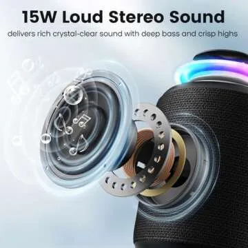 Bluetooth Speaker Wireless,IP67 Waterproof & Dustproof Portable Speaker with Lights,15W Loud Stereo Sound, 2500mAh Battery All Day Playtime, TWS Pairing, BT5.3, Home/Party/Outdoor/Beach (Black)