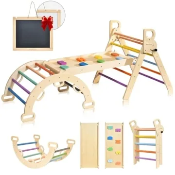 BlueWood Pikler Triangle Set - 7-in-1 Wooden Toddler Climbing Gym and Slide for Indoor Fun