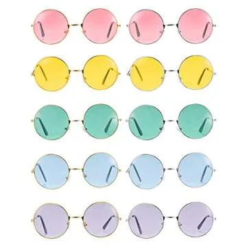 Blulu 10 Pairs Round Hippie Sunglasses John 60's Style Circle Colored Glasses (Gold Silver Frame)