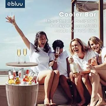 Show more If you're looking to elevate your outdoor gatherings, the Bluu Outdoor Table Cooler is the perfect blend of style, functionality, and convenience. This versatile piece not only serves as a table but also as a cooler that keeps your beverages ice-cold! Imagine hosting summer BBQs and parties where guests can easily grab their favorite drink without making frequent trips inside. Made with high-quality materials, it's designed to withstand the elements while adding a touch of elegance to your patio or deck. Assembly is a breeze, taking less than three minutes—just attach the four legs, and you're ready to go!