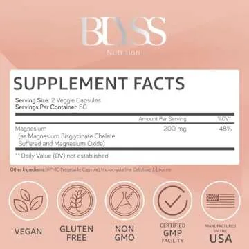 Show moreIntroducing the BLYSS Nutrition Magnesium Bisglycinate Capsules for Women – your all-in-one dietary supplement designed to empower your well-being! Each capsule packs a powerful 200mg of chelated glycinate magnesium, ensuring maximum absorption and gentle digestion, perfect for those sensitive stomachs. Crafted specifically for women, these capsules work harmoniously within your body to promote restful sleep, alleviate muscle cramps, and uplift mood by combating magnesium deficiencies effectively.