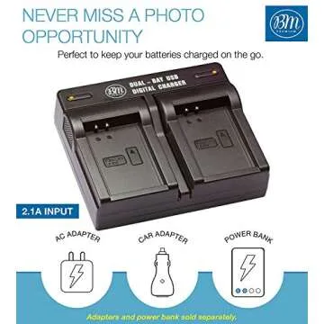 BM Premium LP-E12 Dual Battery Charger for Canon EOS-M, EOS M2, EOS M10, EOS M50, EOS M50 II, EOS M100, EOS M200, SX70 HS, Rebel SL1 Cameras