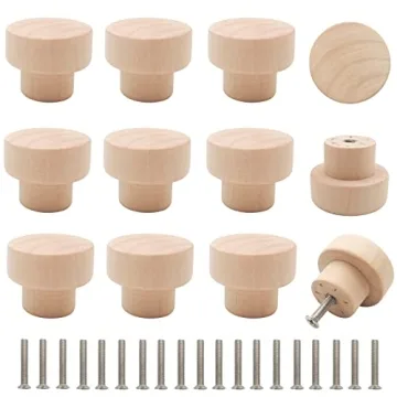 Show more Introducing the Bmgop 16PCS Wood Knobs, the quintessential finishing touch for your kitchen or furniture projects. Crafted with a commitment to quality, these flat top round cabinet knobs come in a natural wood color, featuring a diameter of 35mm (1.38 inch) and a height of 26mm (1.02 inch). The unfinished surface allows you to personalize and perfect these knobs with your choice of stains, paints, or finishes, making them a versatile addition to any decor. Each set comes with 16 screws, providing everything you need for a hassle-free installation. Perfectly designed to enhance the aesthetic of any space, these knobs will revolutionize your cabinets, dressers, and furniture.
