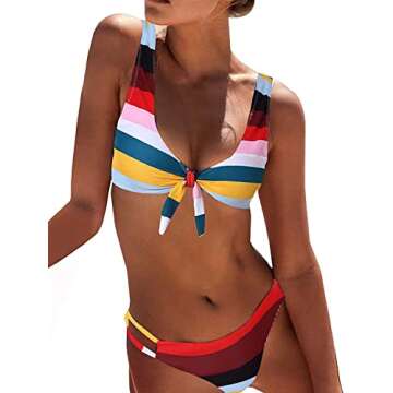 Show moreIntroducing the BMJL Women's Sexy Detachable Padded Cutout Push Up Striped Bikini Set, the perfect addition to your summer wardrobe. This stunning two-piece swimsuit combines vibrant rainbow stripes with a sexy cutout design, creating a bold yet sophisticated look. Made from high-quality, durable materials, this bikini is designed to offer maximum comfort and style whether you're lounging by the pool or enjoying a day at the beach. The adjustable straps and padded cups provide support and enhance your curves, ensuring a flattering fit for all body types.