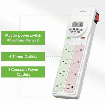 BN-LINK 8 Outlet Surge Protector with 7-Day Digital Timer (4 Outlets Timed, 4 Outlets Always On) - White