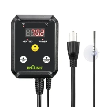 Show more Meet the BN-LINK Digital Heat Mat Thermostat Controller, the ultimate solution for maintaining a consistent and reliable temperature for all your heating needs. Whether you are a passionate gardener looking to germinate seeds, a reptile enthusiast ensuring the perfect habitat for your pet, or a brewing hobbyist requiring precise temperature control, this thermostat is designed to simplify your life. With an impressive temperature control range from 40°F to 108°F and a robust 8.3A maximum load, you can trust this device to keep your various environments in their ideal temperature range. The simple and intuitive three-button interface makes setup seamless, allowing you to focus on what matters most.
