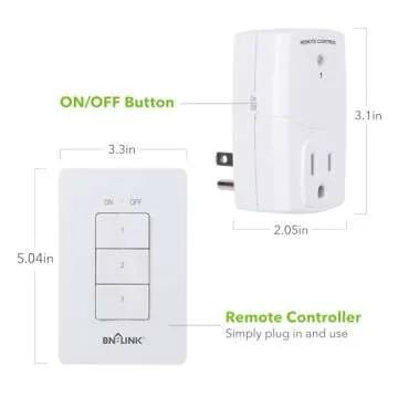 BN-LINK Mini Wireless Wall-Mounting Remote Control Outlet Switch Power Plug in for Household Appliances, Wireless Remote Light Switch, LED Light Bulbs, White (3 Outlets)