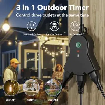 The remote control operates all three outlets simultaneously, allowing users to easily toggle their devices on and off from up to 100 feet away.