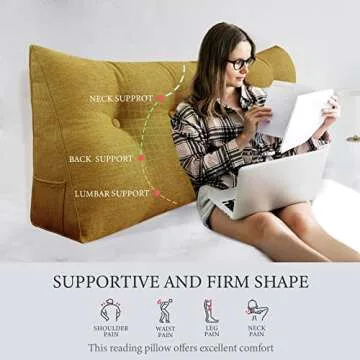 BNCKTRD Headboard Pillow Wedge King Size Large Bolster Pillow for Bed Triangle Reading Pillow Back Support Pillow for Sitting Up in Bed XXL Couch Daybed Bed Rest Backrest Cushion Linen Yellow