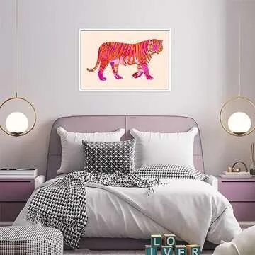 BNGFDV Funky Pink Orange Tiger Canvas Wall Art Trendy Preppy Animal Poster Girls Bedroom Cute College Dorm Apartment Wall Print Painting Hot Pink Girly Decor Bedroom Gallery Office 12x16in Unframed
