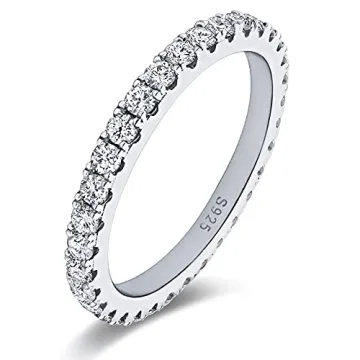 The band width of just 2.2mm strikes a perfect balance between subtle refinement and visual impact, making it an ideal choice for various occasions, from casual outings to special celebrations. This classic eternity band can be worn alone for a minimalist look or stacked with other rings to create a unique ensemble. Many users particularly love its affordable price and the ethical, sustainable sources of the cubic zirconia stones, allowing you to wear it with pride.