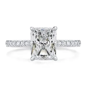 Bo.Dream Radiant Cut 2 Carat Cubic Zirconia Engagement Rings for Women Platinum Plated Sterling Silver Size 4.5