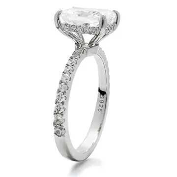 Bo.Dream Radiant Cut 2 Carat Cubic Zirconia Engagement Rings for Women Platinum Plated Sterling Silver Size 7