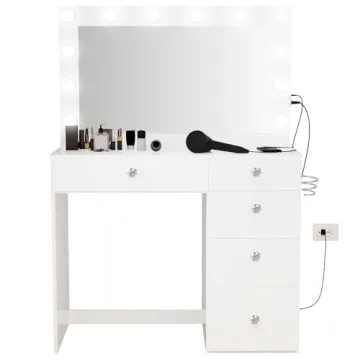 With five spacious drawers, this vanity provides ample storage for all your makeup and beauty tools, ensuring that your space remains organized and clutter-free. Say goodbye to rummaging around in chaos; now, you can have a neat and tidy vanity that showcases your collection beautifully.