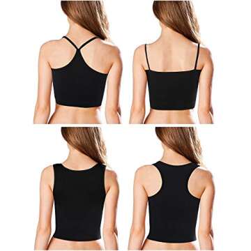 Boao 4 Pieces Crop Tops for Women, Basic Workout Tops Spaghetti Strap Tank Tops Sleeveless Racerback Cami for Sports Gym Black