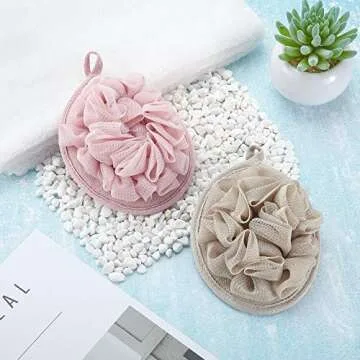 Boao 6 Pcs Bath Shower Pouf Sponge Mesh Pouf Shower Ball Exfoliating Body Sponge Pad Shower Scrubber Ball Shower Glove with Flower Bath Ball (Multi-Color)