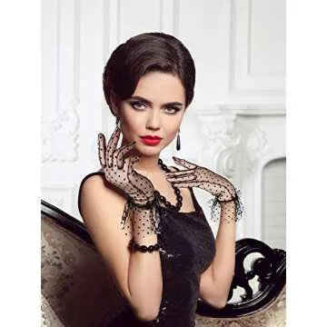 Boao Women Short Lace Glove Floral Courtesy Lace Glove for Wedding Tea 1950's Party Costume Favors(Black)
