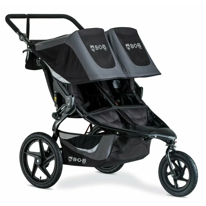 Show moreIntroducing the BOB Gear Revolution Flex 3.0 Duallie Double Jogging Stroller in Graphite Black. Designed with the active family in mind, this premium jogger stroller embodies both form and function, delivering an unparalleled experience for both parents and children. Thanks to its advanced suspension system and air-filled tires, this stroller ensures a smooth ride, whether you're navigating city streets, park trails, or rural paths. The stroller's adjustable handlebar, coupled with its capacity to accommodate children of varying ages and sizes, makes it an adaptable companion for any adventure. The canopy is thoughtfully designed to provide maximum sun protection, and the large storage basket ensures you have all your essentials readily accessible. It's sleek, stylish, and durable, offering excellent maneuverability with a locking swivel-front wheel for stability. This is more than just a stroller; it is your gateway to new horizons with convenience and comfort.