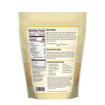 Show moreEnhance your meals with Bob's Red Mill Wheat Germ, a wholesome addition to your pantry that brings both nutrition and taste. This 12-ounce bag (0.75 pounds) of Wheat Germ is packed with essential vitamins and minerals, making it a great choice for health-conscious individuals. Each serving is a good source of Vitamin E, folate, and thiamin, contributing to your daily requirements while ensuring you benefit from its health properties. Being Vegan, Vegetarian, and Kosher Pareve, this Wheat Germ fits perfectly into a variety of dietary preferences, allowing everyone to enjoy its unique flavor and health benefits without any guilt.
