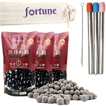 Show moreDelve into the delightful world of bubble tea with the **WuFuYuan Boba Pearls Kit**, where homemade indulgence meets quality. This exceptional set includes **3 bags of premium boba pearls** (8.8 oz each), designed for anyone who craves an authentic bubble tea experience at home. Known for its exquisite chewiness and smooth texture, WuFuYuan has become a beloved brand among bubble tea enthusiasts. The all-inclusive kit is perfect for making memorable drinks that can be enjoyed with family or friends. The addition of **3 reusable stainless steel boba straws with silicone tips** and a cleaning brush promotes sustainability while enhancing your sipping experience. Plus, the chic canvas carrying bag makes it easy to enjoy your bubble tea on the go!