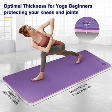 With its Upgraded Anti-skid Design, you can practice your favorite poses without the fear of slipping, even in hot yoga sessions. The innovative texture on both sides offers a secure grip, allowing you to flow seamlessly from one posture to another. Measuring a generous 72*24 inches and with a thickness of 1/4 inch, it offers ample cushioning for your knees and joints, ensuring a comfortable practice every time.
