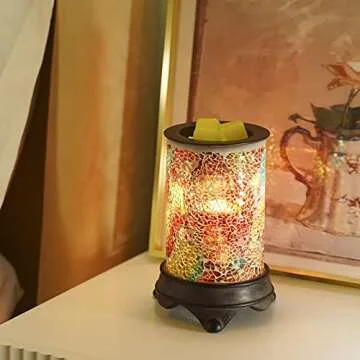 Show more This stunning Handcrafted Electric Wax Warmer features a classic mosaic pattern that is as beautiful as it is functional. Whether lit or unlit, it captures the eye and complements any modern interior, from homes to offices, gyms, and more. It's not just a decorative piece, but a wonderful addition that fills your space with captivating aromas. Designed for efficiency, this wax warmer rapidly melts aroma wax tarts and scented candles, producing an abundant amount of fragrance while casting a warm glow that’s incredibly inviting.